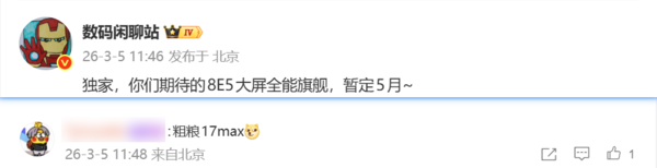 【CNMO科技消息】3月5日,数码博主“数码闲聊站”爆料称,一款搭载第五代骁龙8至尊版移动平台的大屏全能旗舰暂定5月发布。据网友猜测,这款新机为小米17 Max。