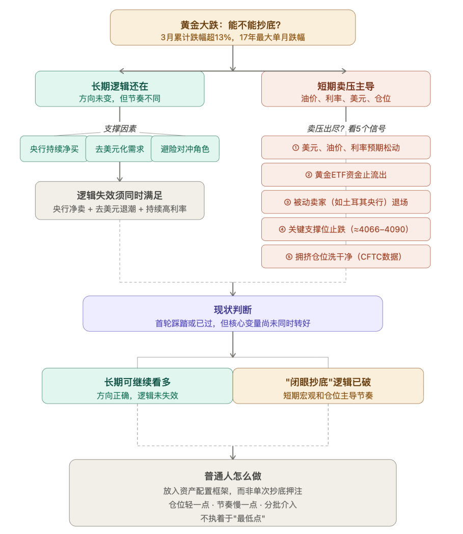 黄金的长期逻辑和短期价格并不是一回事。长期看,它受益于央行配置、储备分散和避险需求;短期看,金价却经常被油价、美元、利率预期和市场仓位主导。这意味着,即便长期方向没错,短线也可能继续波动。