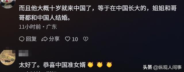 消息一出,网友们纷纷感慨:“一家两代都扎根中国,这才是最动人的双向奔赴啊,从喜欢中国到成为中国女婿,太暖心了。”