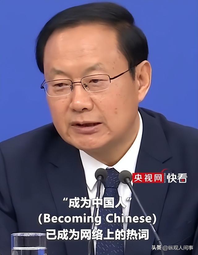 就在方浩明官宣订婚的同一天,文化和旅游部部长孙业礼在十四届全国人大四次会议民生主题记者会上提到,“‘成为中国人’已成为网络热词”。
